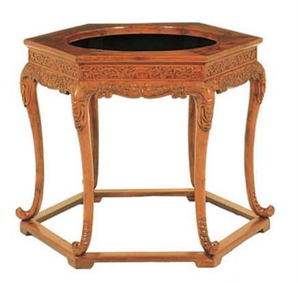 攻玉山房旧藏明黄花梨六方形雕花火盆架