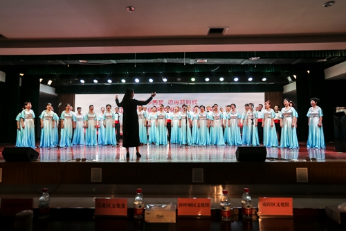 江北区文化馆艺术团新创作舞蹈《迈向新时代》、获奖合唱《康定情歌》《思念》,大渡口区文化馆志愿团队舞蹈《吉祥酒盅》,九龙坡老干部艺术团创作舞蹈《火红的辣椒》,沙坪坝区文化馆群星舞蹈团《采薇舞》,南岸区文化馆中老年艺术大学艺术团合唱《鼓浪屿之波》,北碚区文化馆缙云霓裳时装队时装秀《书韵流芳》,渝北区文化馆艺术团创作舞蹈《托起明天的辉煌》,巴南区文化馆星光舞蹈团创作舞蹈《栀子花儿顺墙栽》等文艺节目依次呈现,活动在《共圆中国梦》的激昂扬旋律中落下帷幕。演员们用文艺形式传递党的十九大会议精神、用优美的舞姿演绎对美好生活的向往、用悠扬的歌声吟唱新时代的乐章,精彩的节目让现场高潮迭起、掌声不断,观众们大呼过瘾。