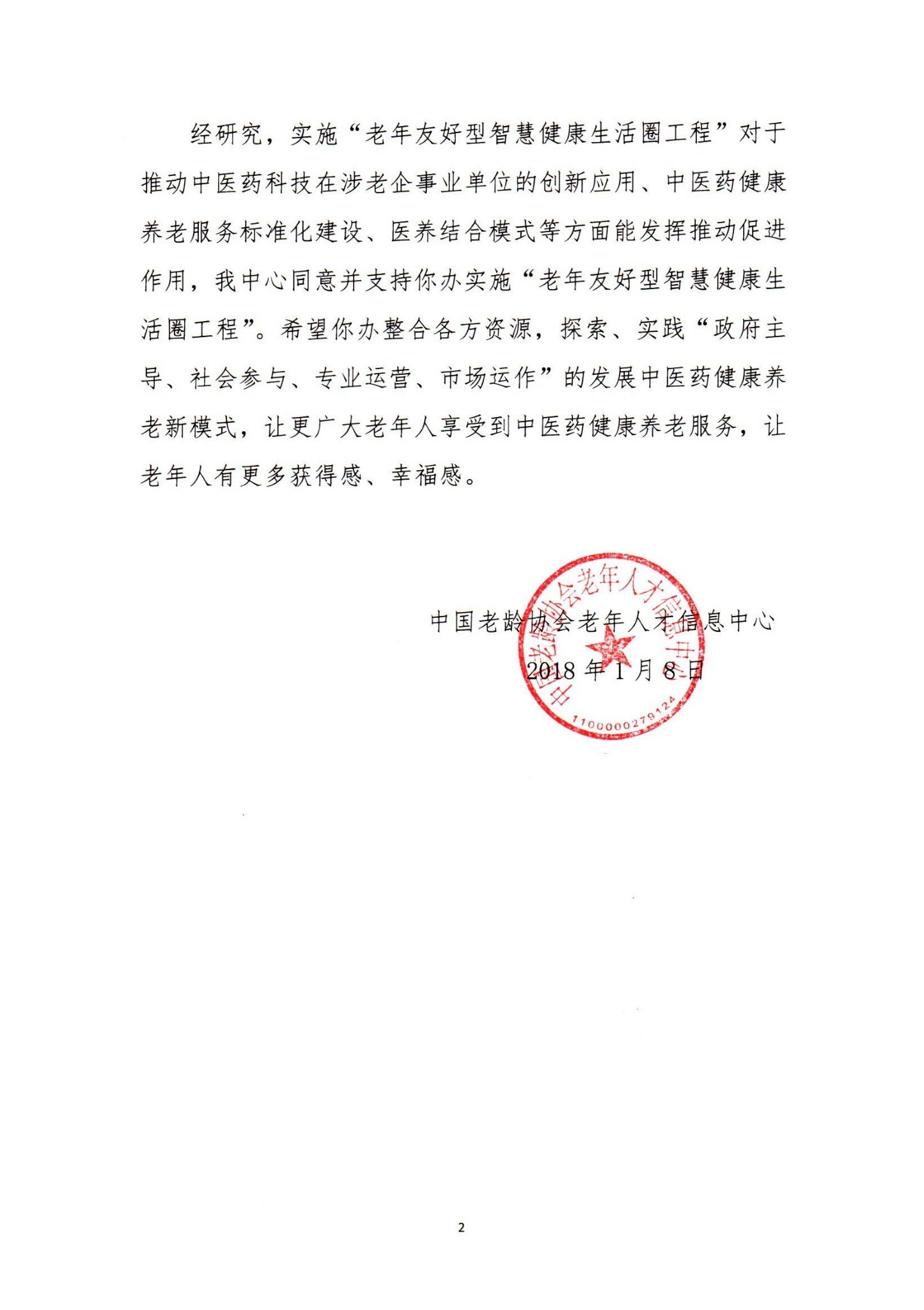 关于同意实施“老年友好型智慧健康生活圈工程”的批复