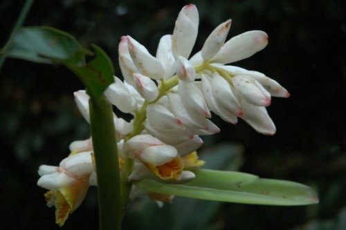 初夏的低海拔山林里,月桃也是赏花焦点,这种姜科月桃属多年生草本植物,有人叫它“艳山姜”、“玉桃”、“良姜”或“虎子花”,叶片呈长披针形,模样神似野姜花,花色花朵成串悬垂,成熟的球形果实会转为大红色,非常美丽引人。