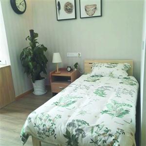 这14间公益房既有单人房也有双人房,共二十多个床位。志愿者入住的单人房大概20平方米,里面布置整洁而温馨。双人房有两张床,可入住两人,装修风格也以简洁温馨为主,其他设施和布局跟老年人房间相差不多。