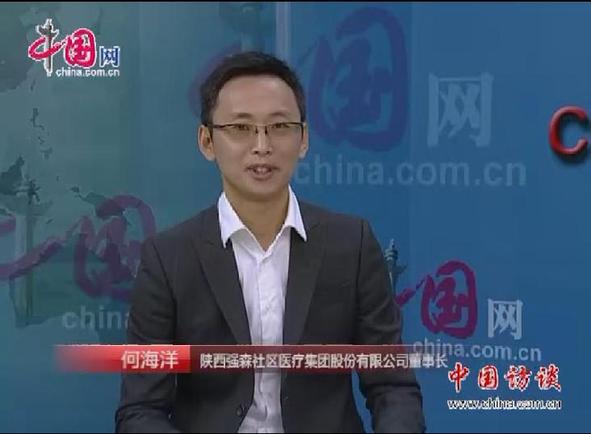 中国网:中国访谈,世界对话,欢迎收看本期的《中国访谈》我是主持人李丹。健康是每个国民的立身之本,也是每个家庭的幸福之源。伴随着健康中国战略的进一步推进,以强森医疗集团为代表的创新型社区医疗机构正在努力探索基层医疗创新的模式,凭借着根植社区,服务家庭的发展理念,以五大新型诊疗模式将优质的医疗服务资源带到每一位居民的身边。那今天我们也荣幸的邀请到陕西强森社区医疗集团股份有限公司董事长何海洋先生做客《中国访谈》。与我们共同来探讨创新的医疗模式。